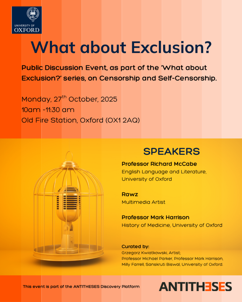 The ‘What About Exclusion’ series is coordinated by ANTITHESES, a multidisciplinary Wellcome Discovery Research Platform at the University of Oxford. ANTITHESES addresses an urgent need for research that can engage meaningfully with the radical value disagreements, polarisation, and informational uncertainty characteristic of contemporary medical science, practice, and policy.